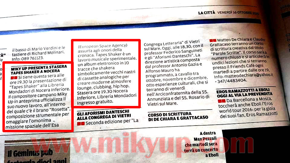 A respectable film needs it's soundtrack and at this point, beside a "The End", in addition to the magnetic sounds emitted by the come, songwriters and musician come to the other side of the space, such as Michele Parisi, aka Miky Up" ......